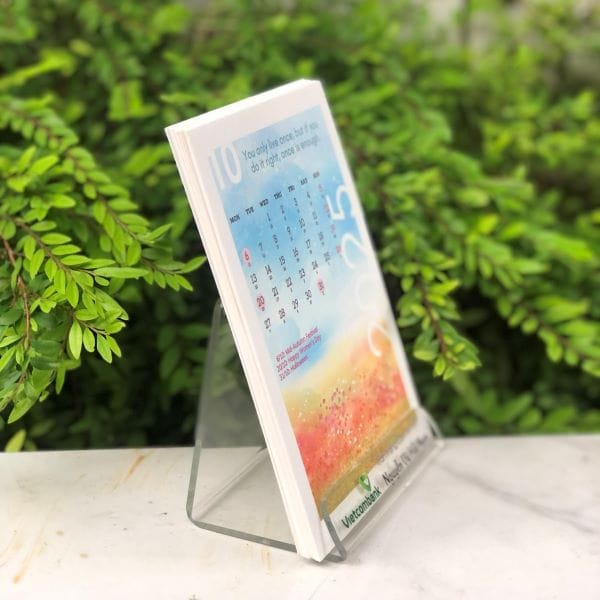 - Chất liệu tờ lịch: Giấy mỹ thuật dày 300gsm, có vân nhẹ