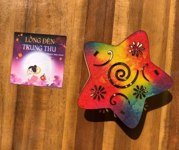Lồng đèn gỗ Trung Thu mini size 10 – 13cm: Mẫu Ngôi sao (bản có màu sẵn)