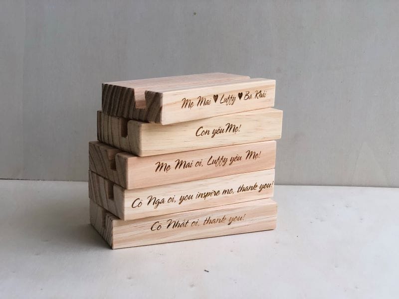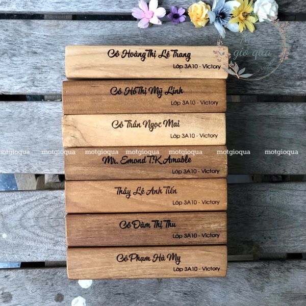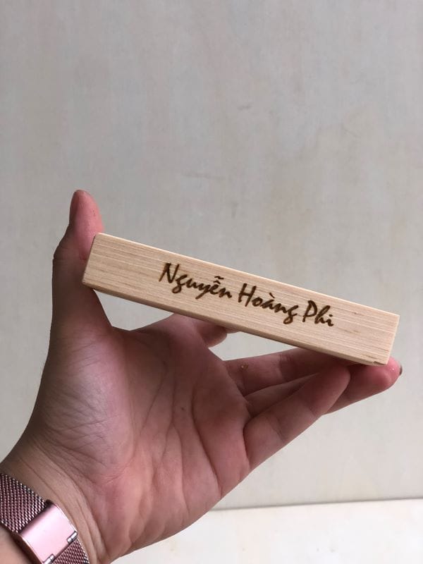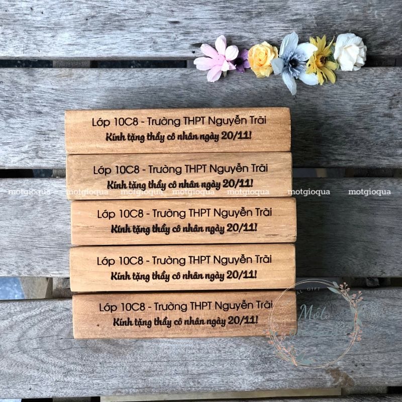 - Cá nhân hóa: Khắc chữ trên đế gỗ, in logo theo yêu cầu